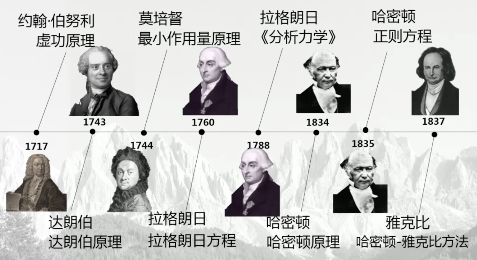 - 进入 19 世纪,1834、1835 年,哈顿发表两篇著名文章,分别奠定了今天的哈密顿原理和哈密顿正则方程。