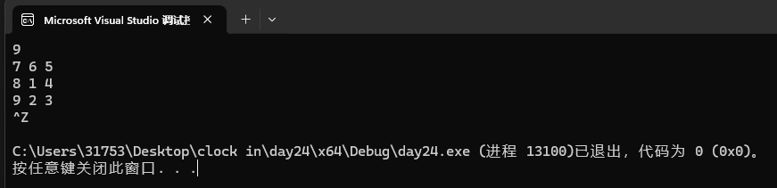 2.若用二维数组存储需要注意矩阵边的长度只能为奇数。