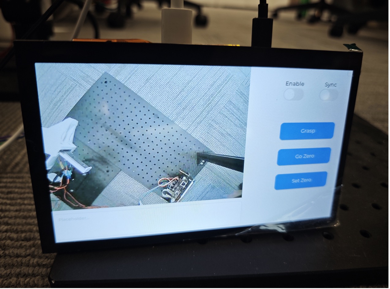 主从机械臂通过 ESP-NOW 进行通信(目前仅支持 leader → follower 的单向通信)。leader 机械臂通过 ESP-NOW 将关节角度信息同步至 follower,实现远程控制。在屏幕上点击 Sync 和 Enable 开关以启用同步。
