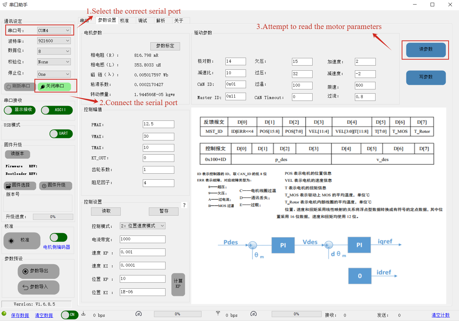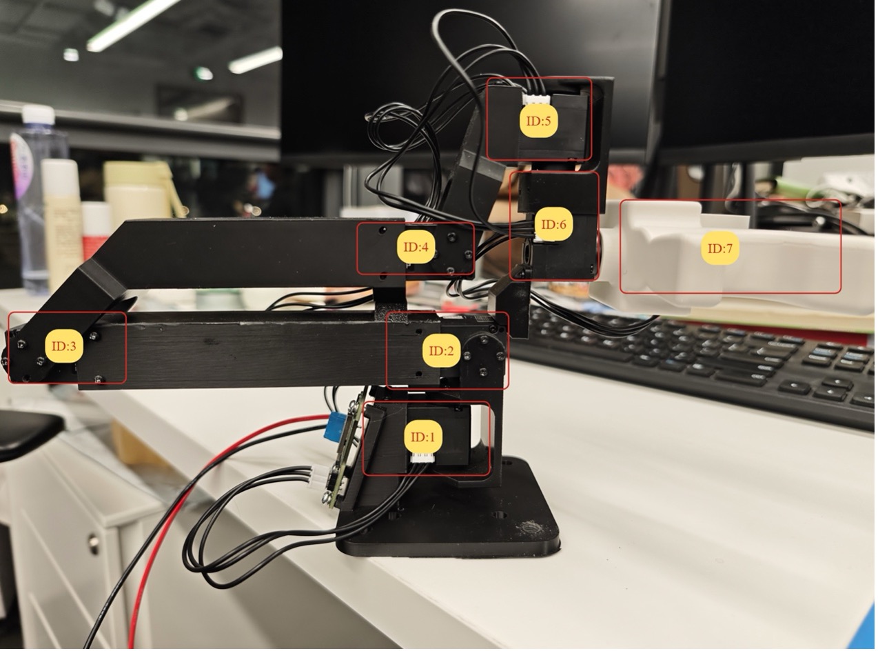 为保证与主机械臂工程参数一致,请按如下要求配置舵机: