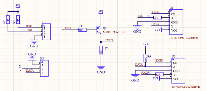 在正式装配前,需要使用 DYNAMIXEL Protocol 2.0 对 7 个 XL330_M077 总线舵机进行参数配置。请提前准备总线舵机驱动板(用于将标准串口信号转换为总线舵机 DATA 信号),并参考下图或官方调试电路进行连接。