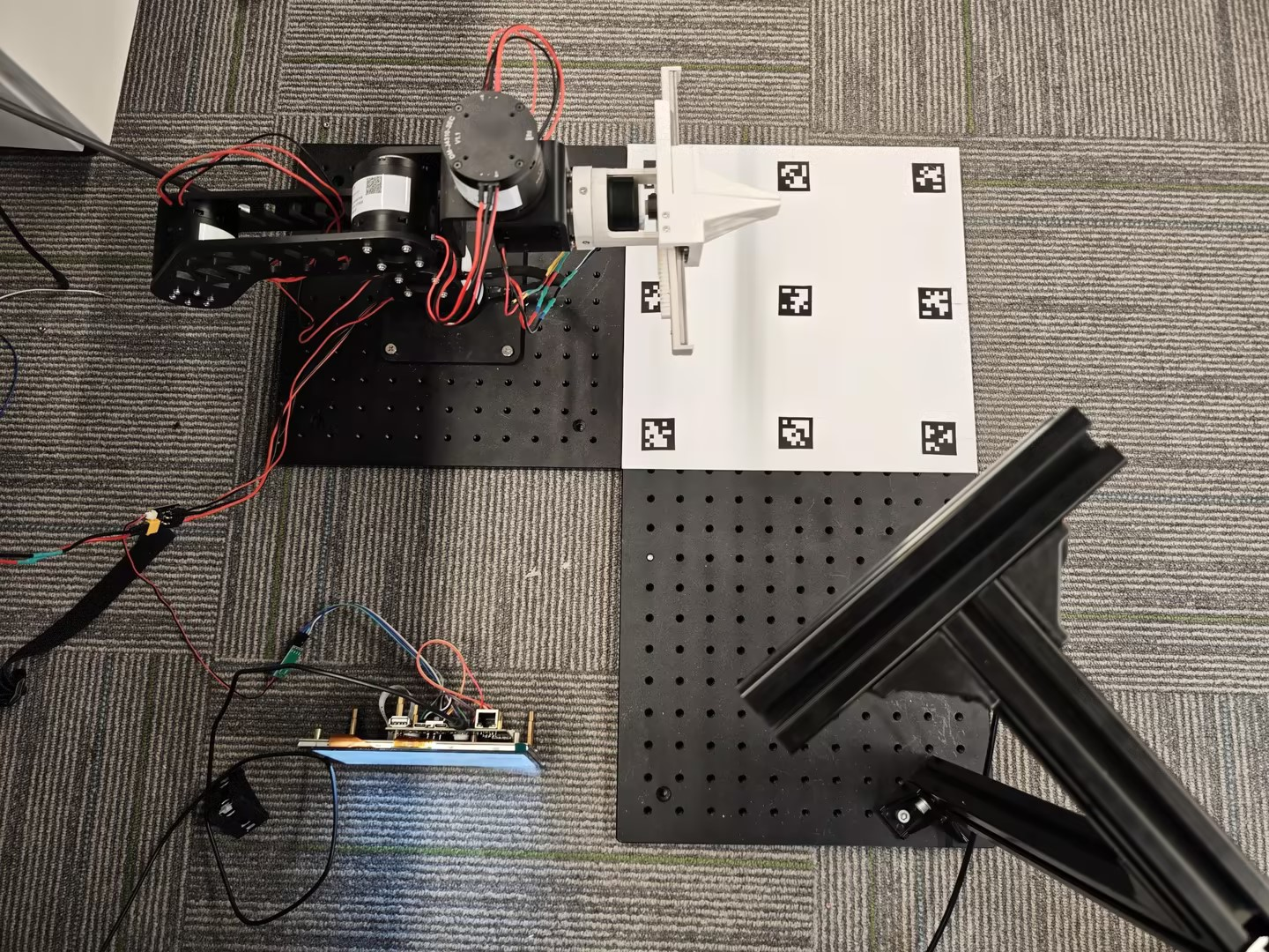 参考上图,将机械臂放置在 300 mm × 300 mm 平板上,相机固定在 300 mm × 600 mm 平板一侧,并使用以下脚本进行标定: