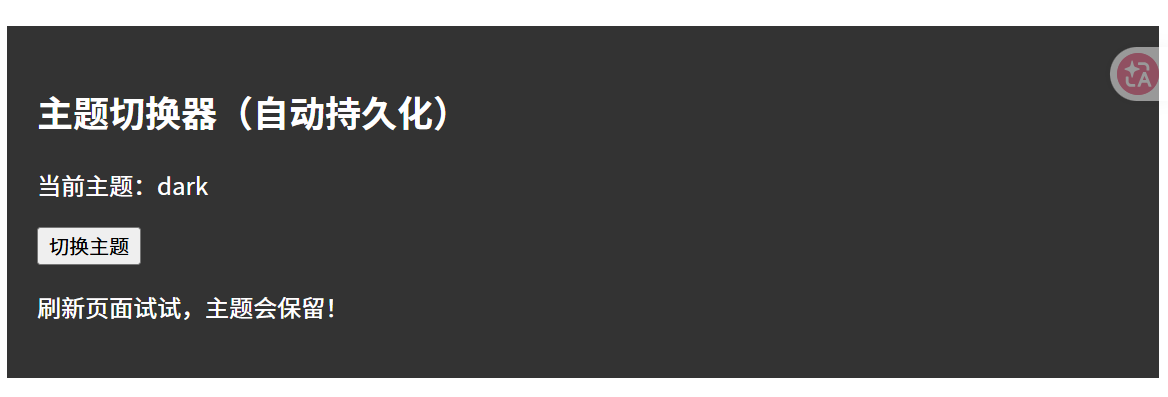 // 自动从 localStorage 读取 'theme',默认 'light'