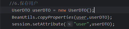 最后就是一个数据安全性问题,其实我们一开始没必要直接把user放在session里面,这涉及到数据的安全性,所以我们把不重要的数据封装到userdto里面,这个作为保障