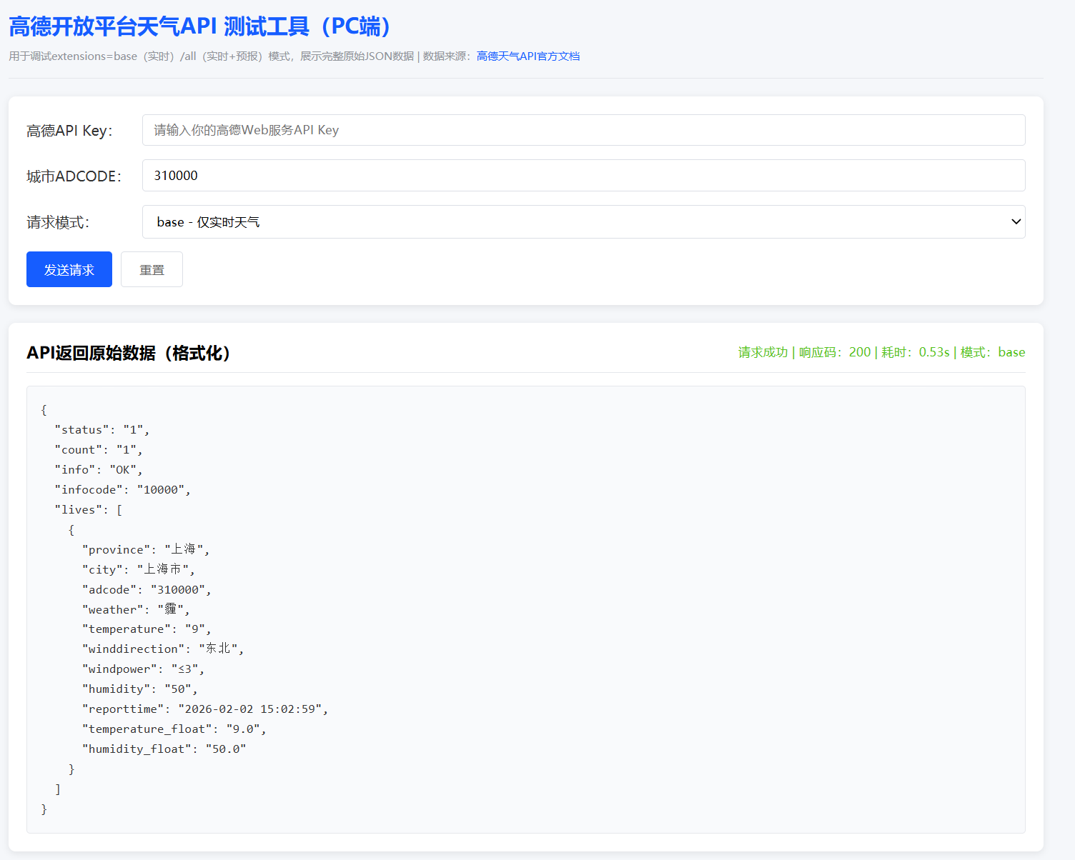 <title>高德天气API PC端测试工具</title>