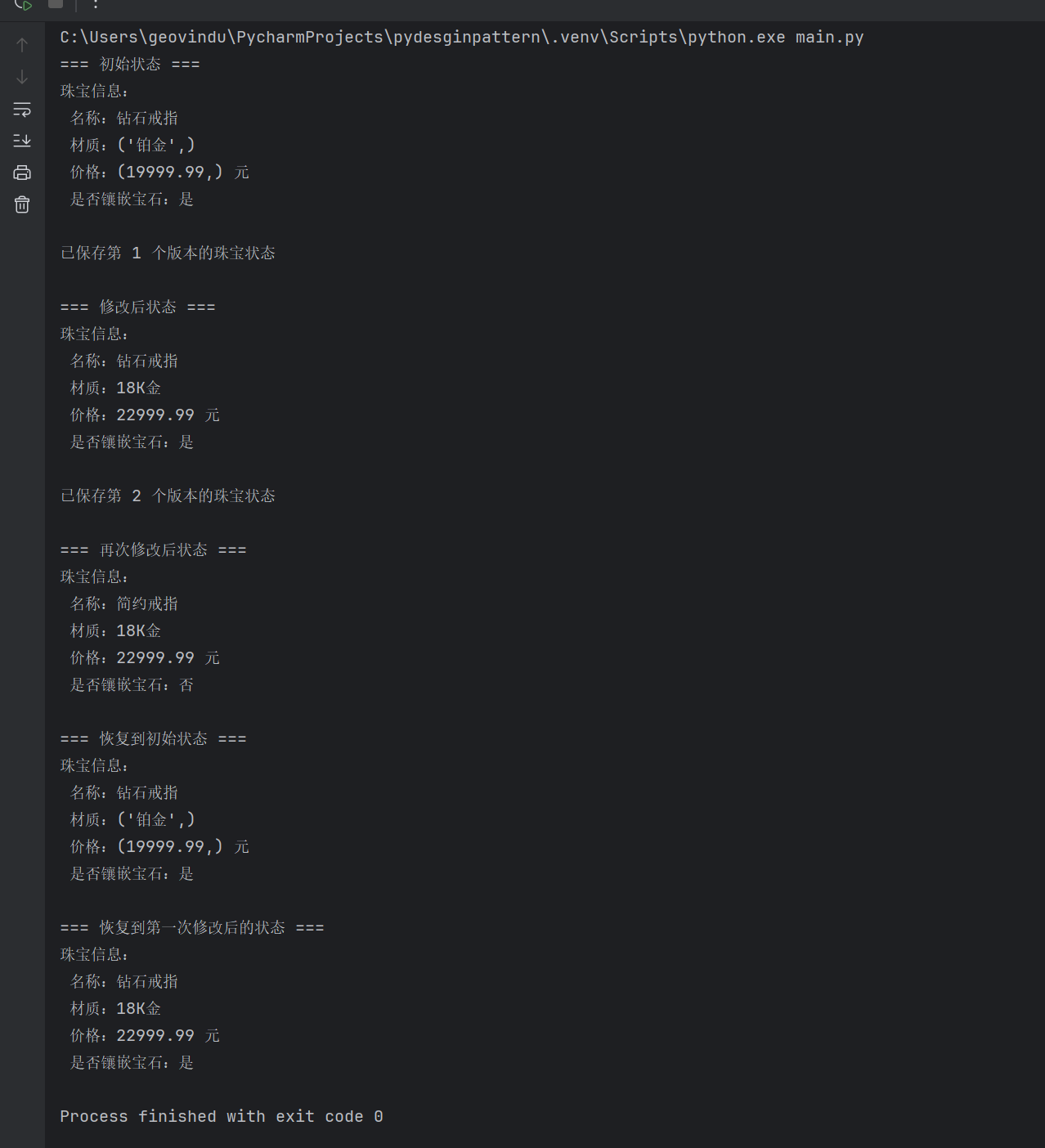 print(f"\n已保存第 {len(self.__mementos)} 个版本的珠宝状态")