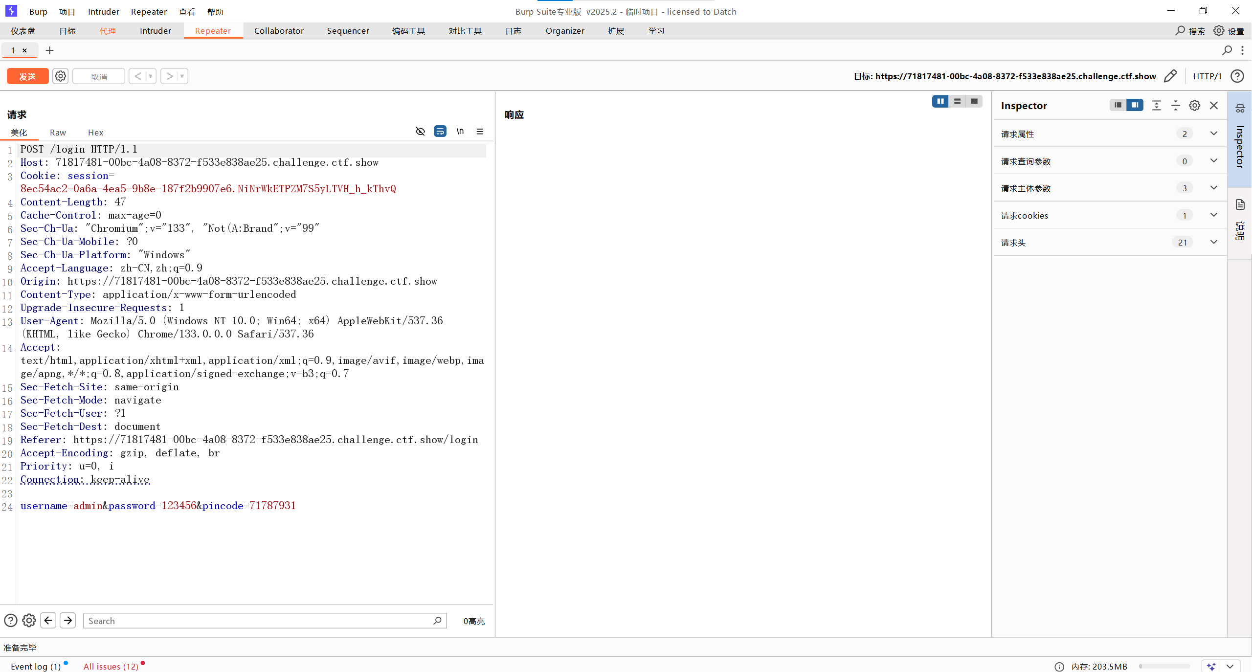 需要向服务器发送一个 POST 请求,且请求体(Raw Data)的内容必须完全等于字符串 ctfshow