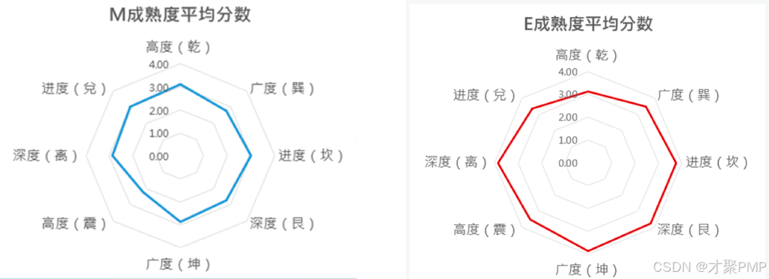 M:最低分(短板)2.25-震卦,变革;E:最低分(短板)3.13-乾卦,战略。