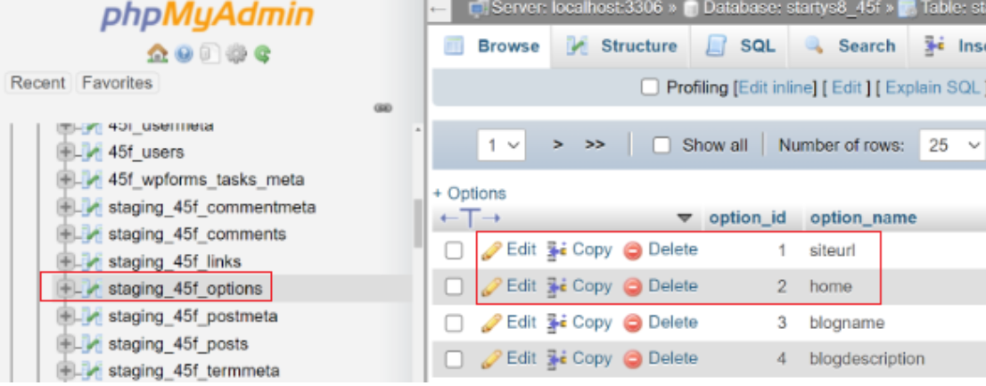 如果无法进入WordPress后台,或者后台设置修改后依然存在问题,可以直接修改数据库中的站点地址: