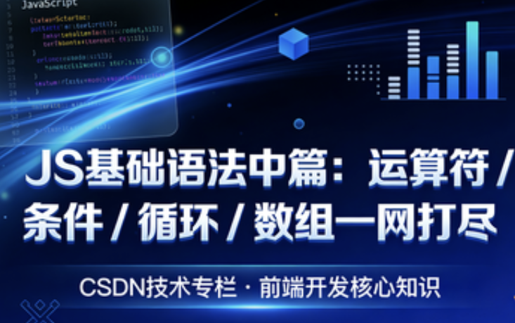 前言:在上一篇 JavaScript 基础博客中,我们了解了 JS 的前世今生、书写形式、基本数据类型等核心内容,而想要真正写出能实现业务逻辑的 JS 代码,运算符、条件语句、循环语句和数组这四大核心语法是绕不开的坎。它们就像搭建 JS 程序的 "砖瓦",运算符负责数据的计算处理,条件语句让程序有了 "判断能力",循环语句实现代码的重复执行,数组则高效管理批量数据。本文将手把手带你吃透这些核心语法,让你的 JS 编程能力再上一个台阶!下面就让我们正式开始吧!