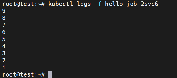 kubectl logs -f hello-job-2svc6