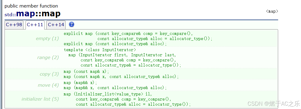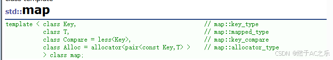 Key:键值的类型,map中key是唯一的T:映射值的类型,通过key映射到valueCompare:比较仿函数,默认less<Key>(按key升序)Alloc:空间配置器,一般使用默认