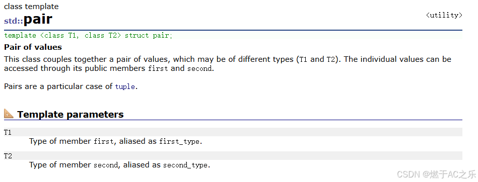 map底层红黑树节点中存储的是pair<const Key, T>键值对。pair是一个模板结构体,将两个数据组合成一个单元: