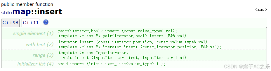 插入:参数必须是pair对象,key已存在时插入失败(与value无关)
