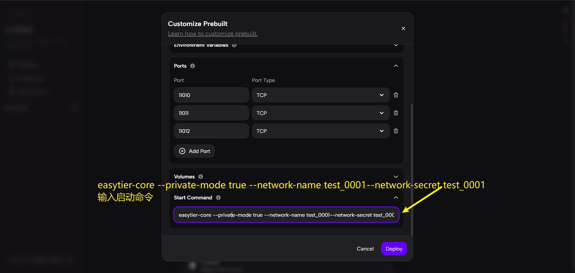 easytier-core --private-mode true --network-name test_0001--network-secret test_0002