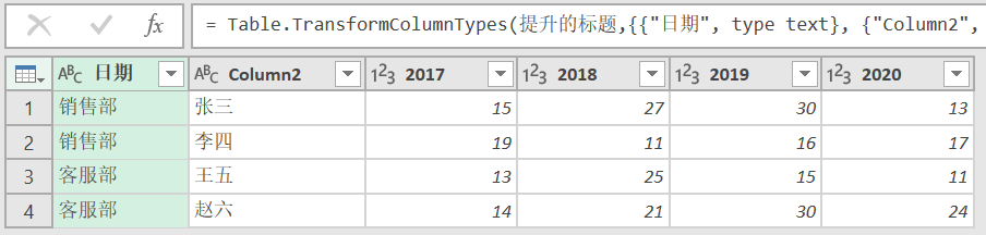 🔷最终将列名改正确之后,得到逆透视之后的一维表