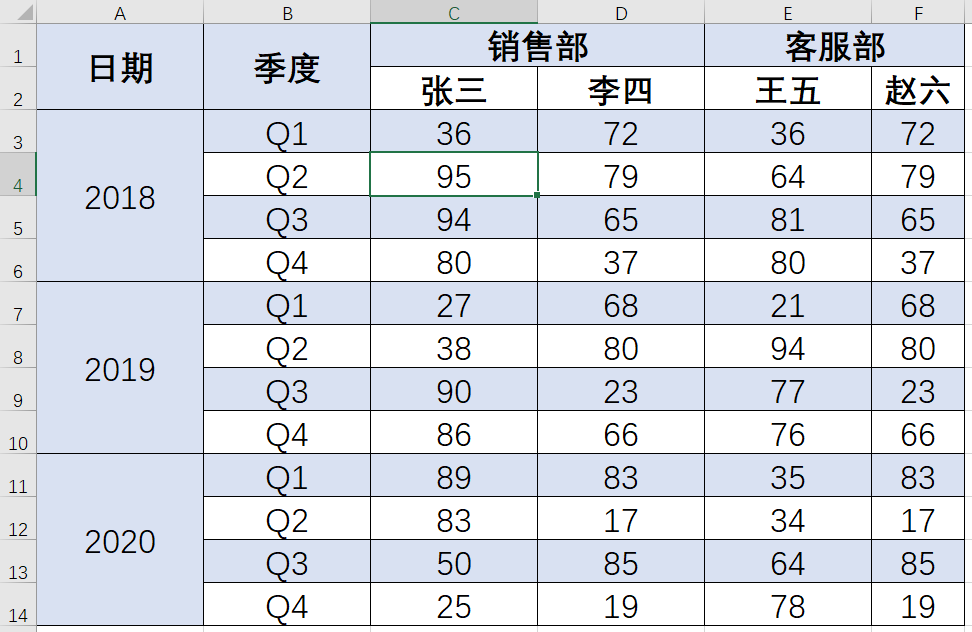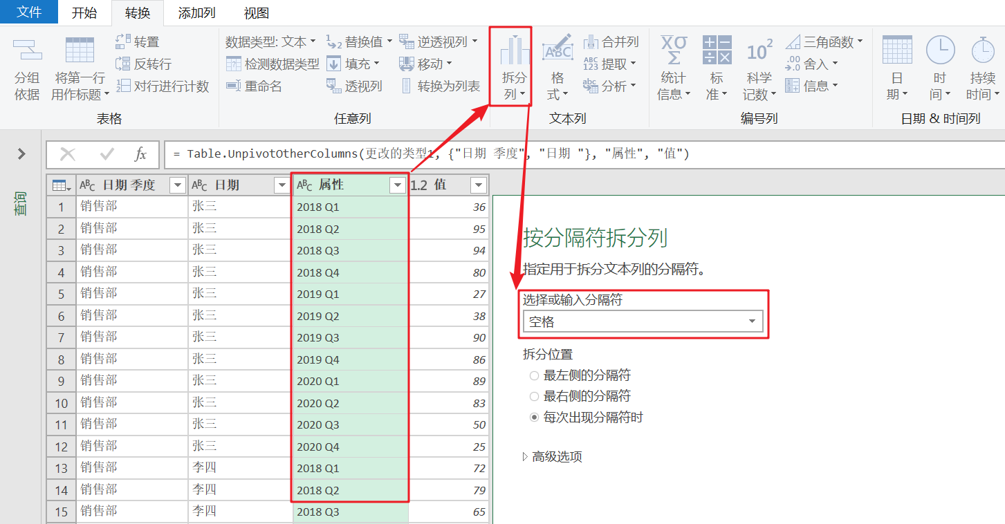 🔷选中日期和季度列,【逆透视其他列】即可。