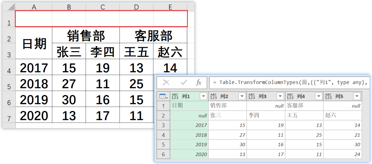 🔷先在插入一个空行,然后使用【Power Query】打开当前表格
