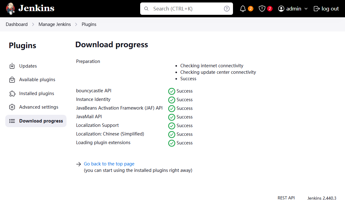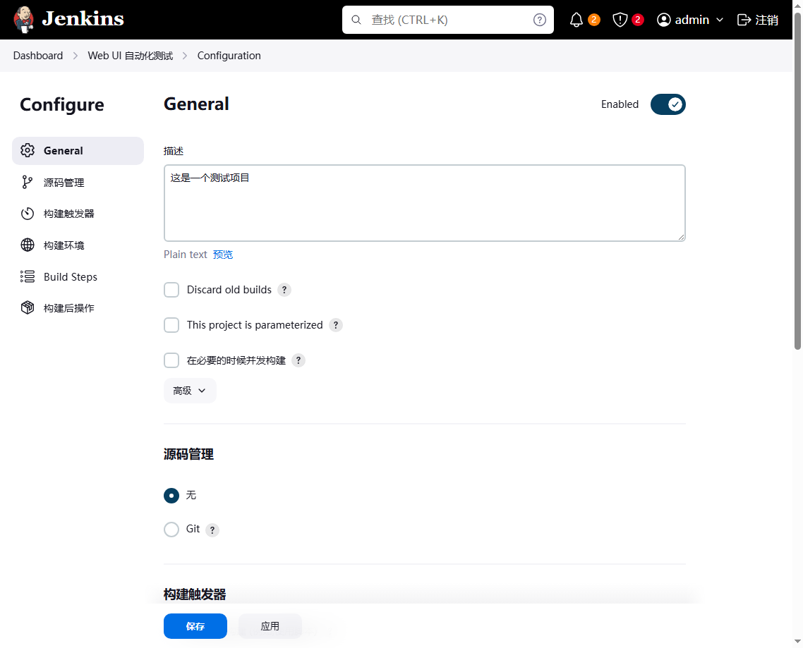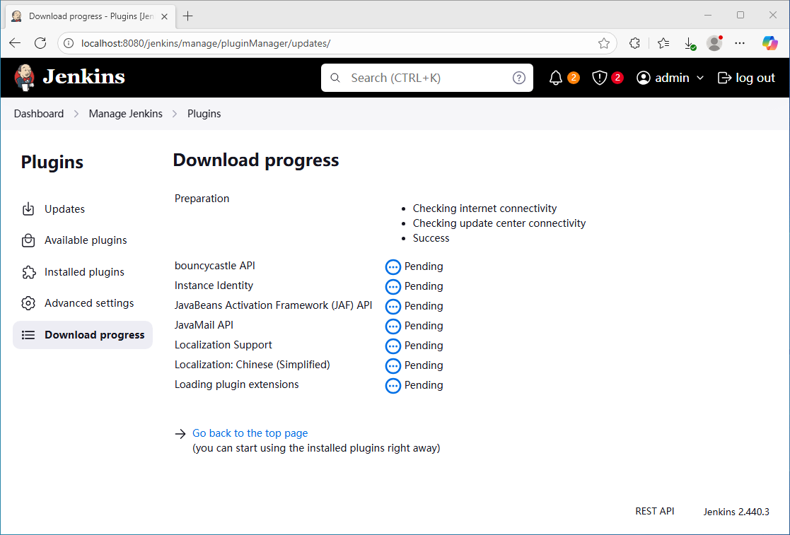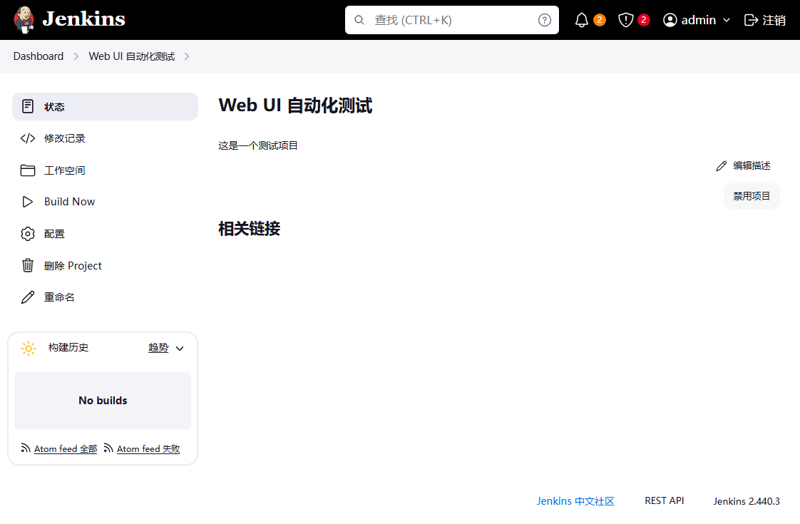 1、启动本地 Jenkins 服务,使用管理员账号密码登录(可自行更改密码);