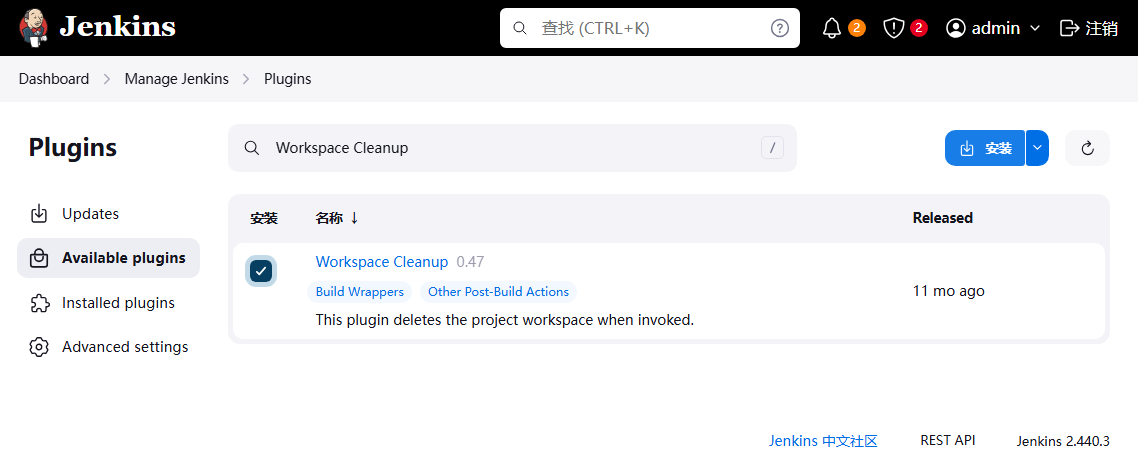 14、安装 Workspace Cleanup 插件(构建环境 → Delete workspace before build starts清空工作区);
