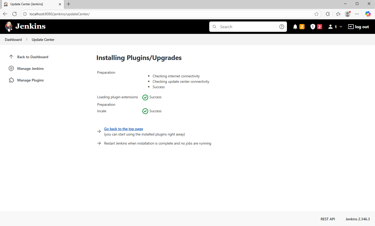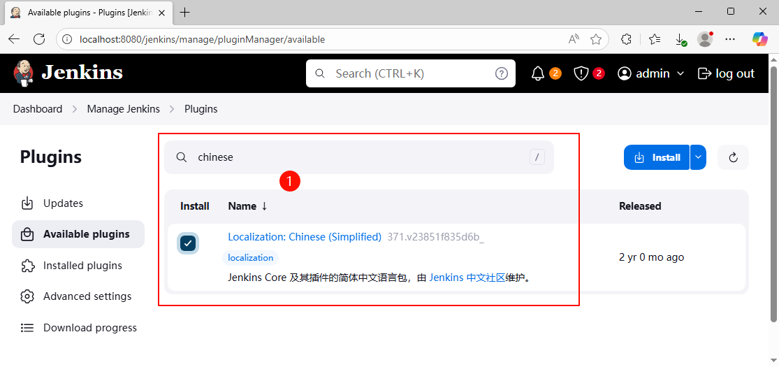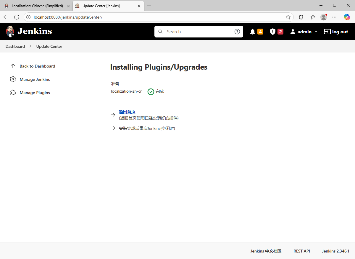 14、依次按需完成其他插件安装;(例如 Jenkins2.346.3 安装 locale 语言包)