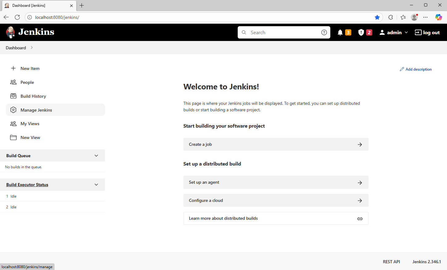 22、回到主页,能够查看到新建的项目(可自行按需设置);至此,本地 Jenkins 环境已经搭建完成;