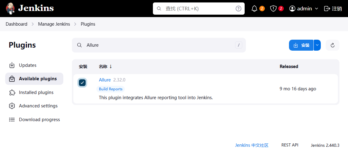 16、 安装 Allure 插件(构建后操作 → Allure Report);