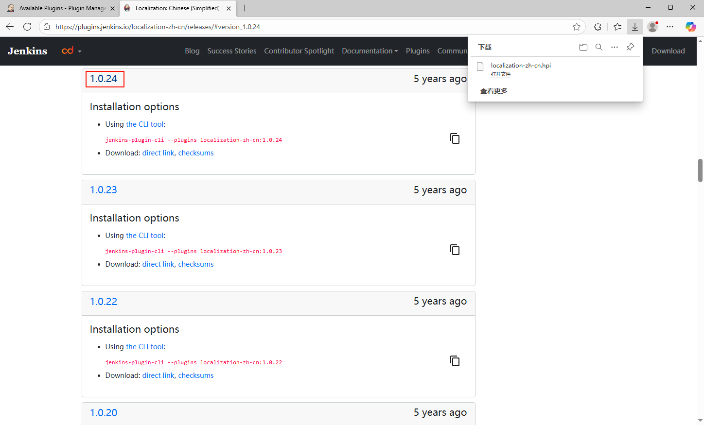 插件和 Jenkins 对应比较版本:https://updates.jenkins-ci.org/download/plugins/