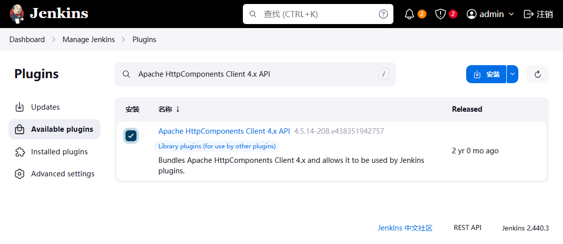 9、安装 Apache HttpComponents Client 4.x API 插件;