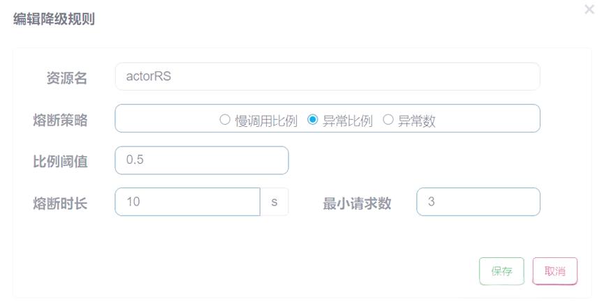 grade:熔断策略,支持慢调用比例、异常比例和异常数策略。