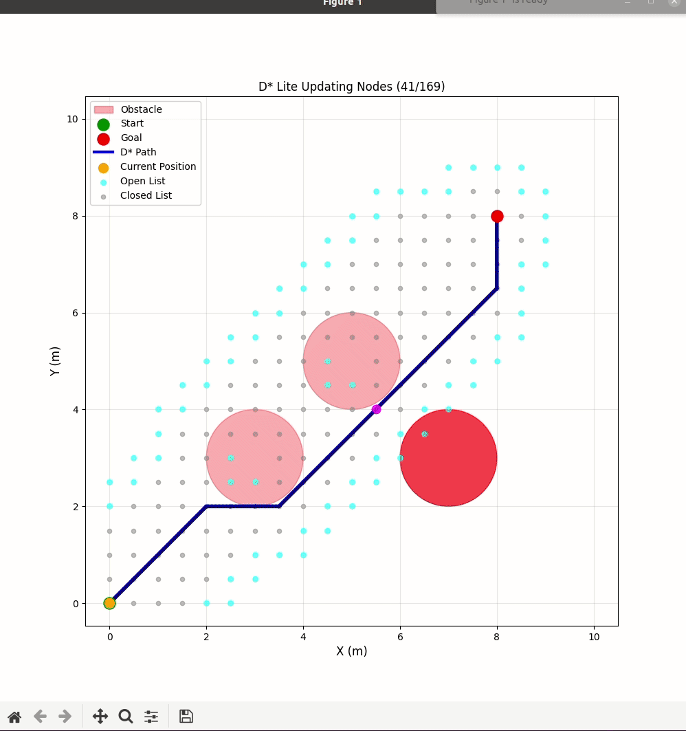 - 重新生成路径:从当前机器人位置出发,基于更新后的代价值,重新选择最优路径
