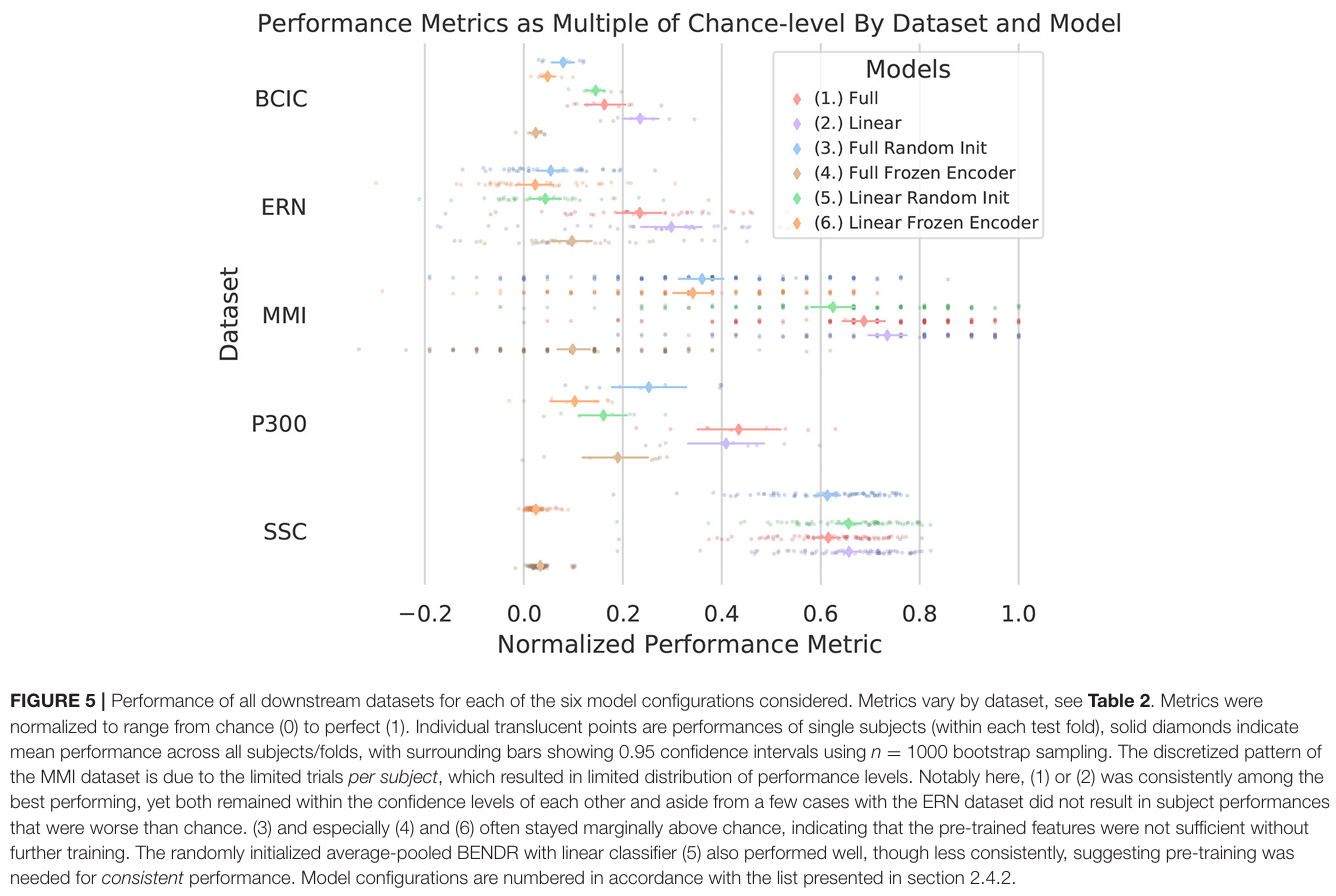 BENDR开辟了"基础模型"(Foundation Model)路线在脑科学中的应用:通过自监督学习从海量无标注神经生理数据中提取通用表征,再适配特定临床或BCI应用。
