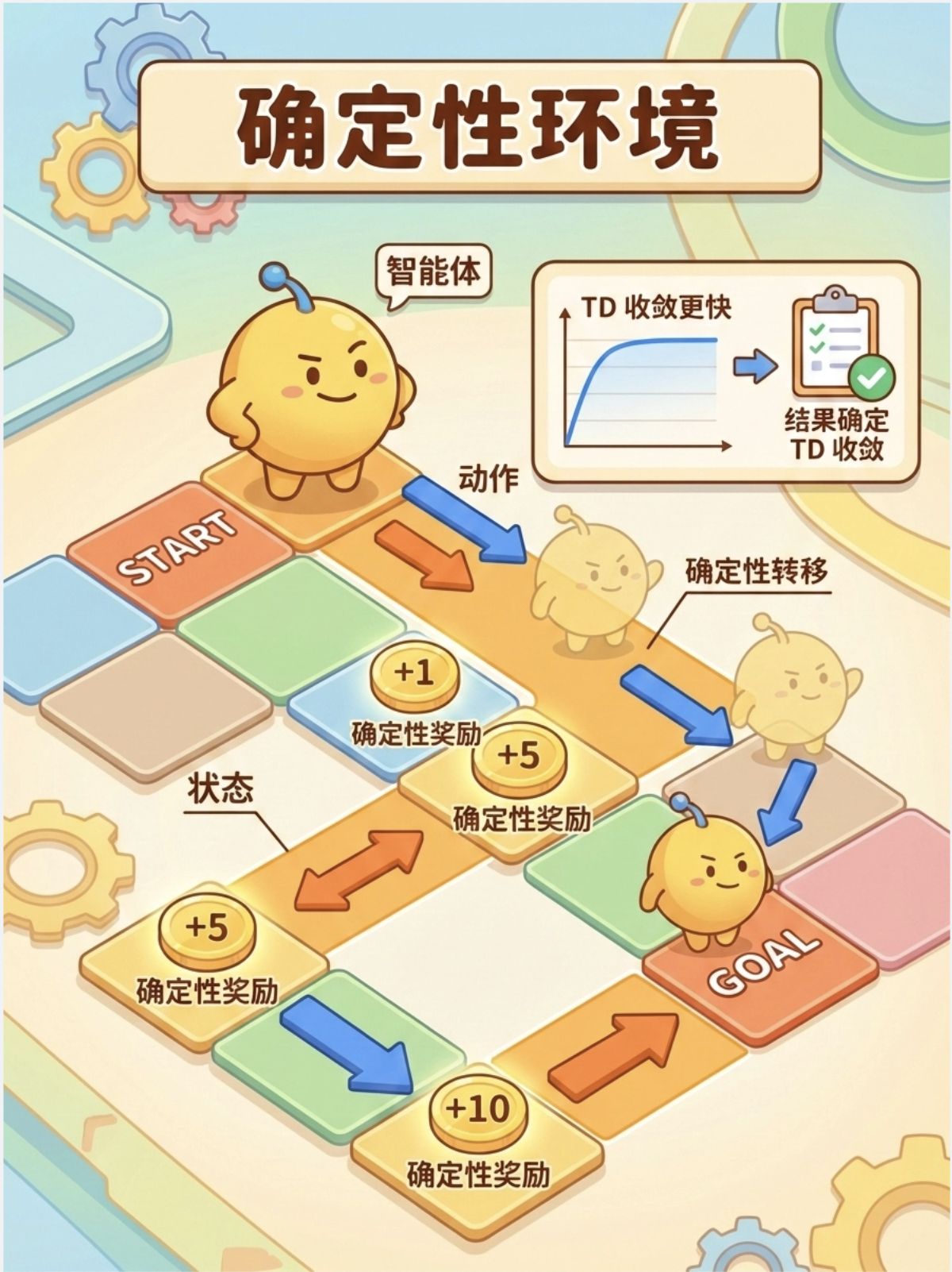 - 无模型方法(TD 学习)无需环境模型,适合大规模、复杂环境,但需要更多的交互经验。
