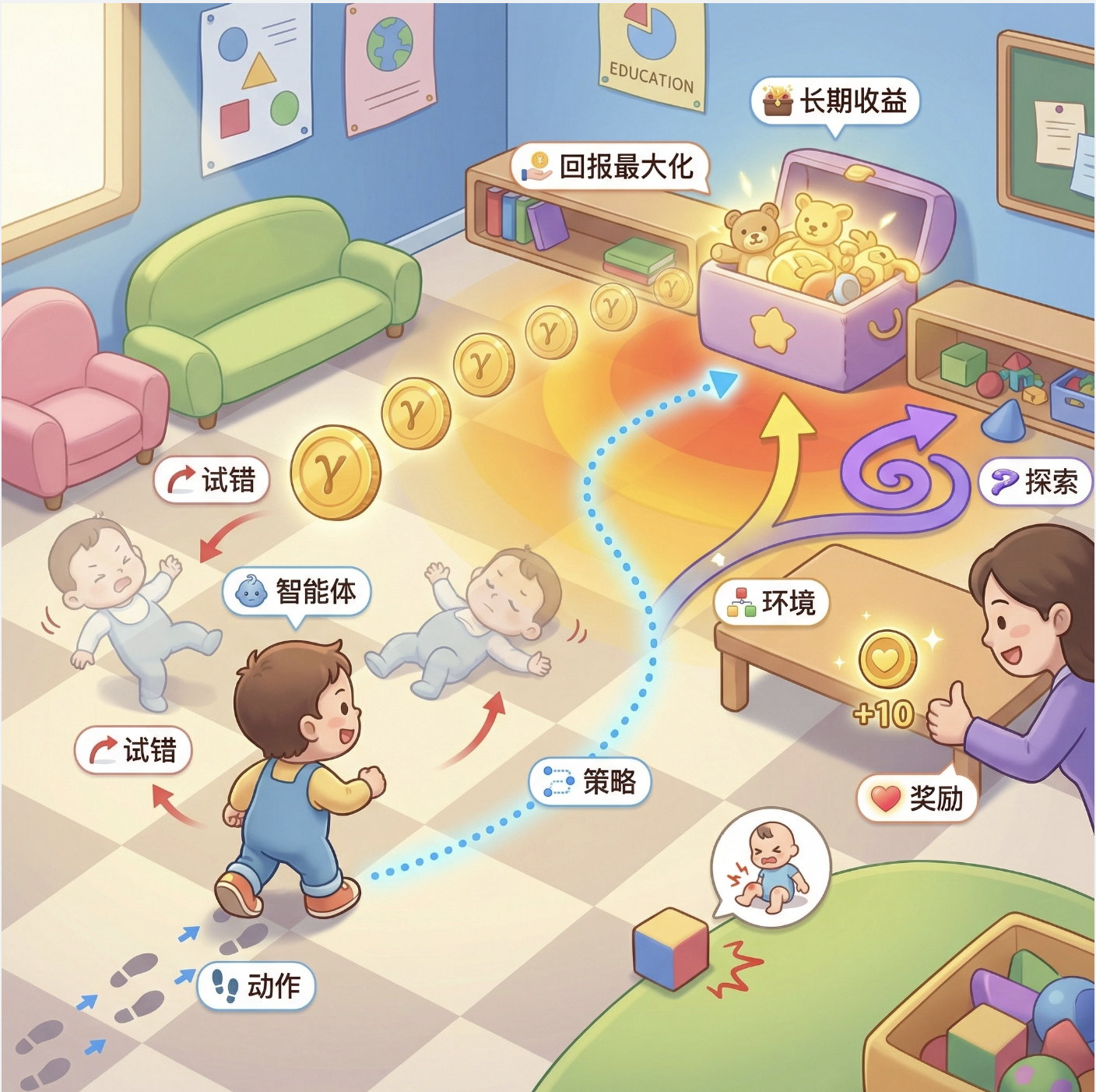 - 智能体 = 正在学走路的小孩