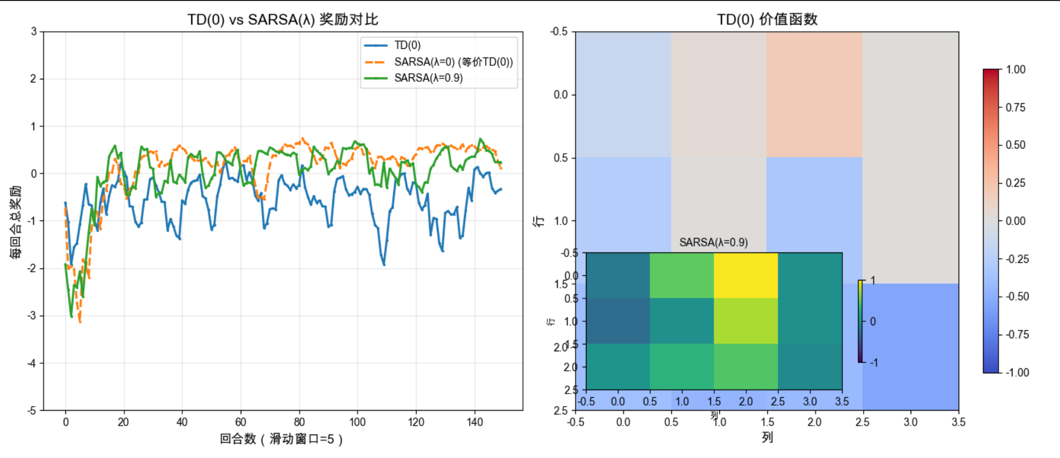 - 实现 Q-Learning 算法(离线 TD 学习),并与 SARSA(在线 TD 学习)进行对比。