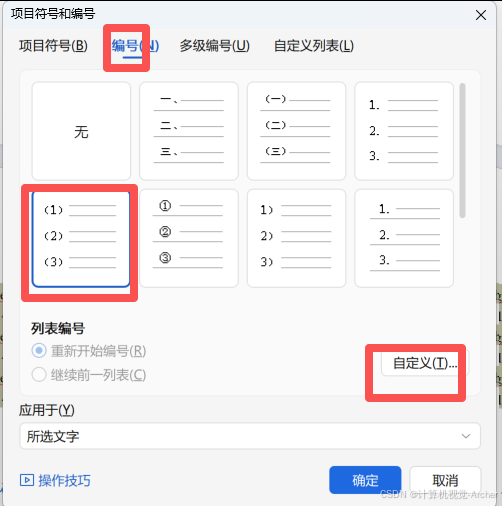 2 编号--选择与[1][2][3]类似的(1)(2)(3)--自定义