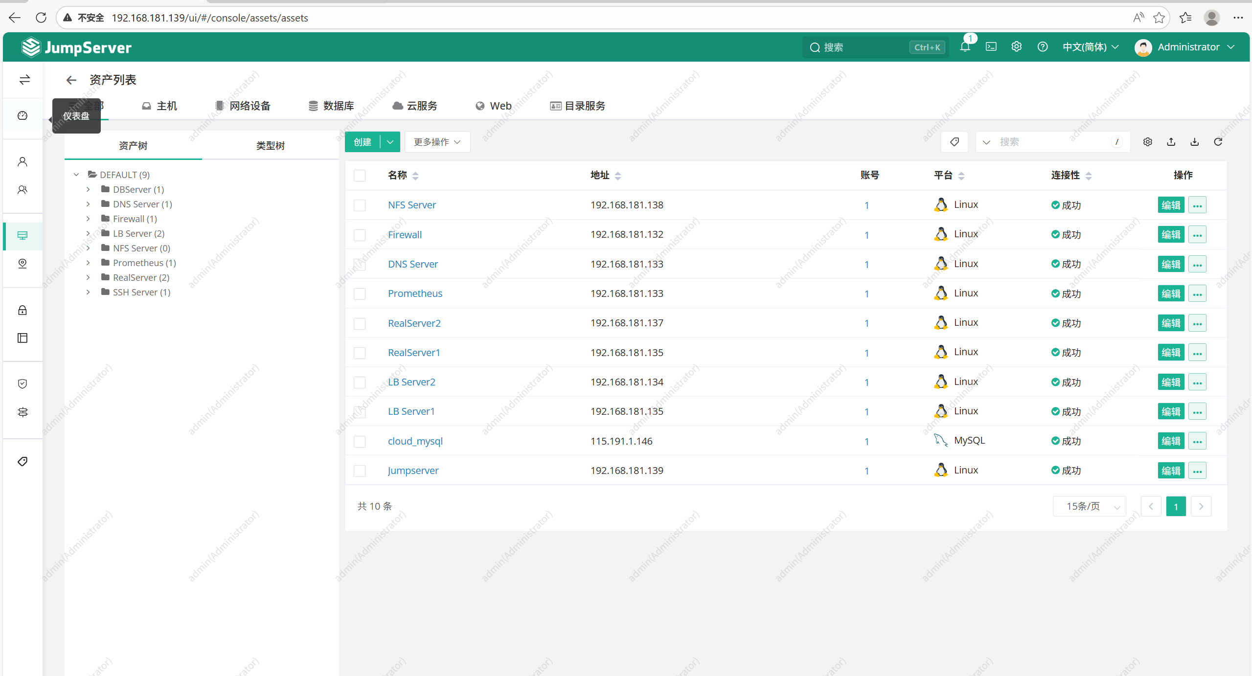 | Host-only | JumpServer | 192.168.181.139 | 堡垒机 |