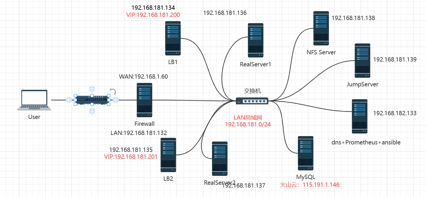 本项目围绕 "高可用、可扩展、易运维" 核心目标,构建了一套基于 Keepalived+LVS 的企业级 Web 集群架构,整合了 DNS 解析、NFS 共享存储、Ansible 自动化运维、Prometheus+Grafana 监控及 JumpServer 堡垒机安全管控,形成从底层网络到上层业务的全链路解决方案,可支撑中小规模 Web 业务的稳定运行。