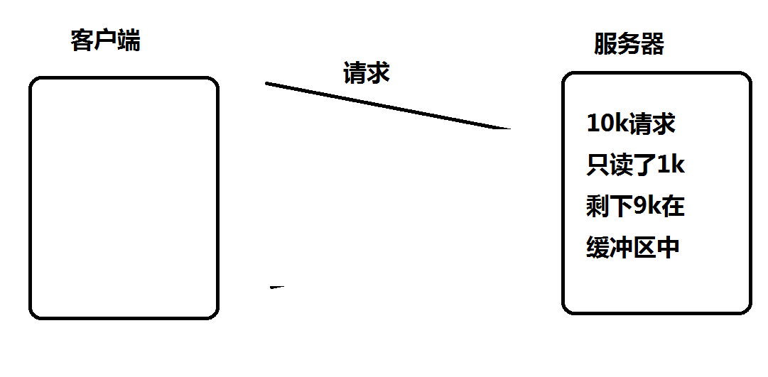 - 如果服务端写的代码是阻塞式的read, 并且一次只 read 1k 数据的话(read不能保证一次就把所有的数据都读出来,参考 man 手册的说明, 可能被信号打断),剩下的9k数据就会待在缓冲区中
