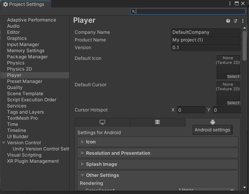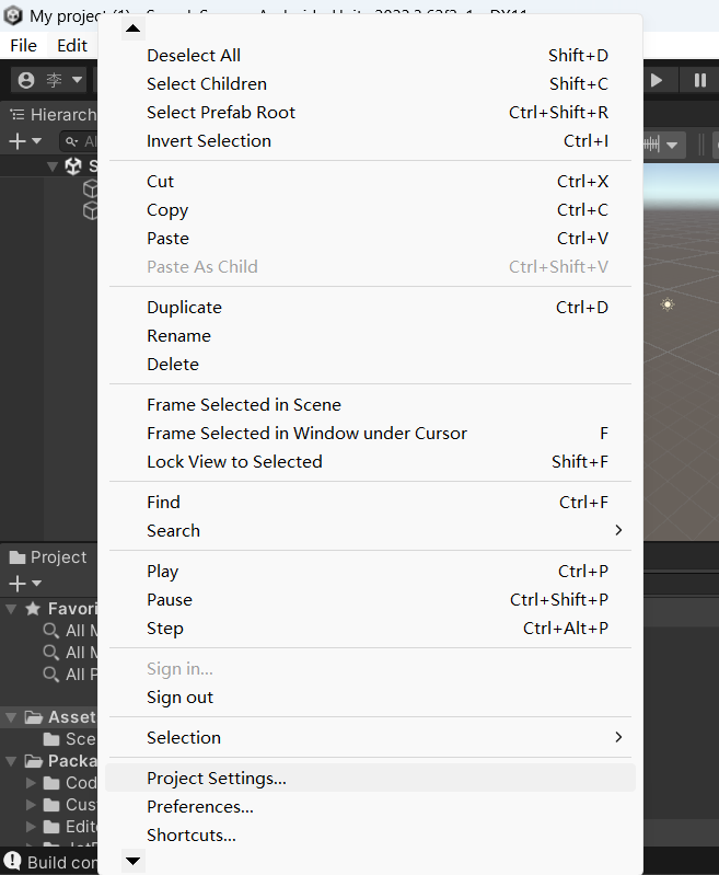 要让我们的项目在安卓设备上成功安装并运行,需要在项目设置(Edit-Project Settings)里做些修改,否则无法安装。