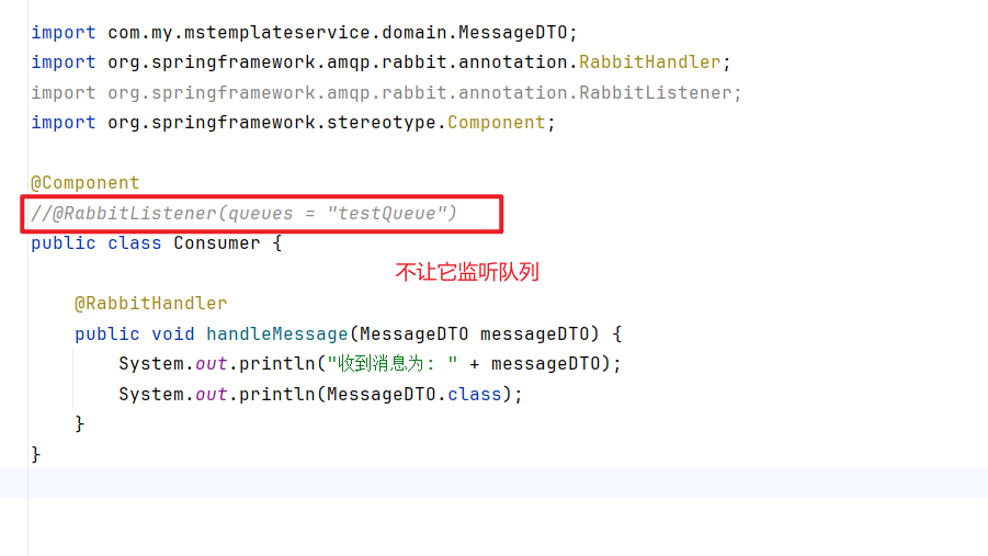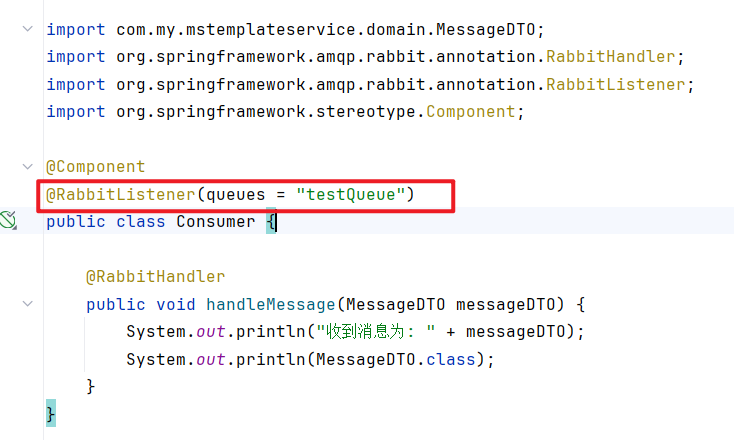 @RabbitListener(queues = "testQueue")