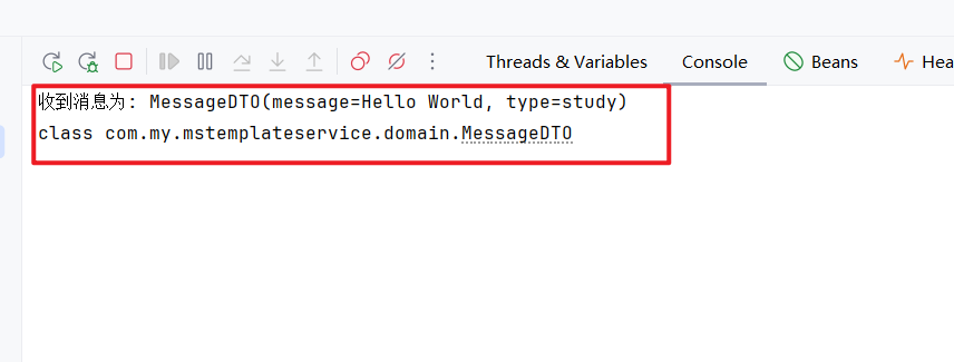 System.out.println("收到消息为: " + messageDTO);