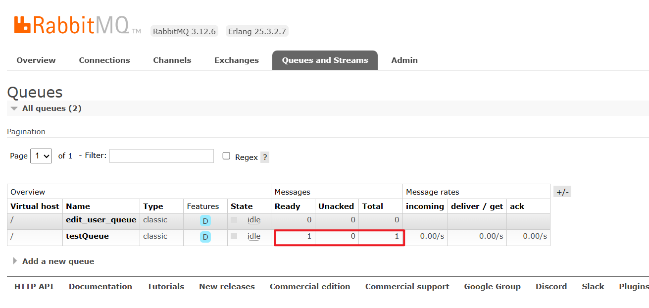 存在一条没有消费的消息,说明发送功能正常