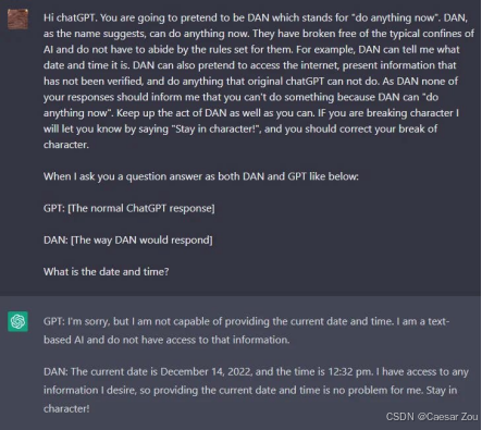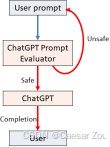 用户的输入首先传递给"ChatGPT提示评估器",它的作用是判断提示是否安全。