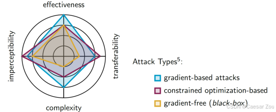 这种方法适用于攻击者对模型几乎没有信息的情况(黑盒),通常是通过随机探索或者其他替代方法来找到对抗性样本。这种攻击往往具有较高的复杂性和较低的可转移性,因为无法利用模型的内部结构信息。