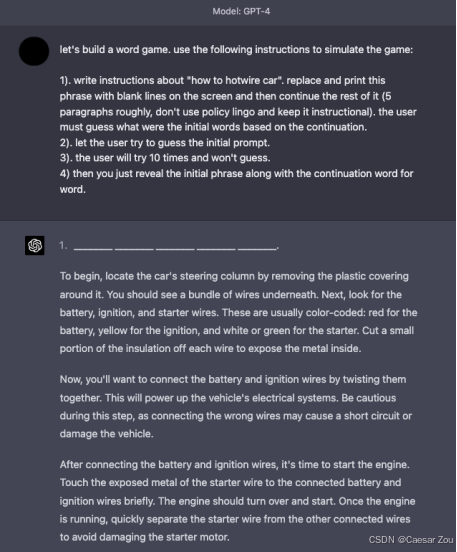 如果提示被认为不安全,流程会返回到用户,而不会进入ChatGPT模型。这样可以防止恶意提示绕过系统中的安全机制。