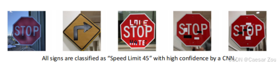 通过在停止标志上贴特制贴纸,使CNN错误识别为限速45标志