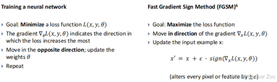 FGSM 的目标是最大化模型的预测误差。它通过计算输入数据(例如图片)的梯度,找到损失函数增加最快的方向,然后沿着这个方向对输入进行微小调整。这样,尽管图像看起来几乎没有变化,但模型可能会将它误分类。