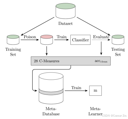 - 估计干净准确率:使用元学习器(meta-learner)来估计一个没有中毒影响下的干净数据的准确率(clean accuracy),即数据在未被污染的理想情况下模型的表现。