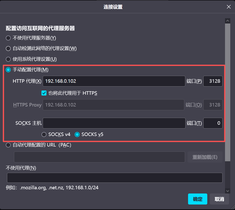 + Proxy: 192.168.0.102:3128